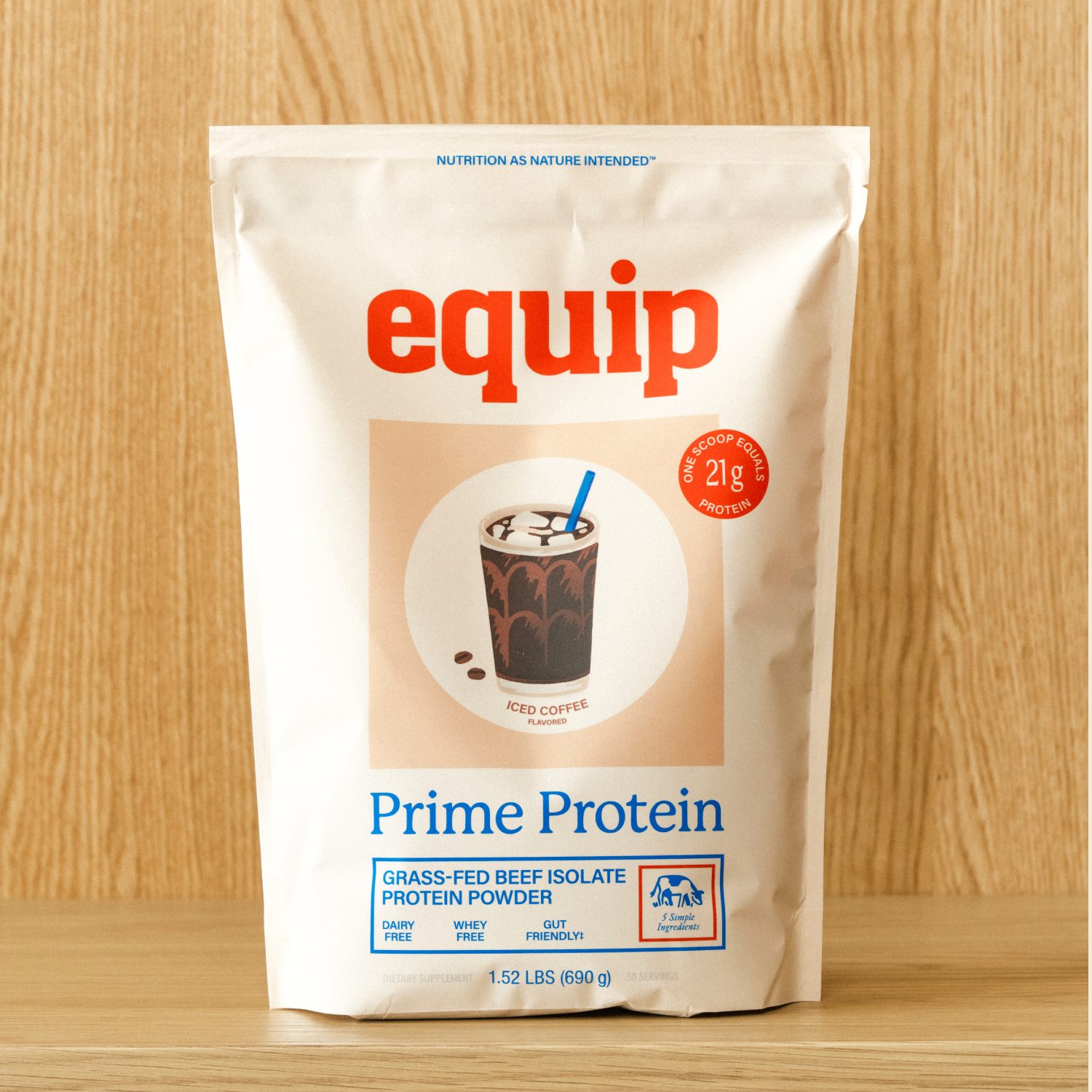 Your body wants to be fed real foods only, but most other supplements on the market are loaded with chemicals, fillers, and artificial flavors. Worse yet, they hide this from you, the consumer. Only Equip is 100% transparent about the ingredients inside our products. Prime Protein is made from just three ingredients: grass-fed beef, all natural cocoa powder, and stevia. Grass-fed beef gives you the nutrients you need to support your health goals, including staying lean, increasing strength, and boosting muscle recovery. Plus, we make Prime Protein the same way bone broth is made: Heated on low so that the protein dissolves into a broth. This preserves the nutrition of the beef. You get the full benefits of a 4 oz cut of beef, in a powder you can add to any meal or drink.