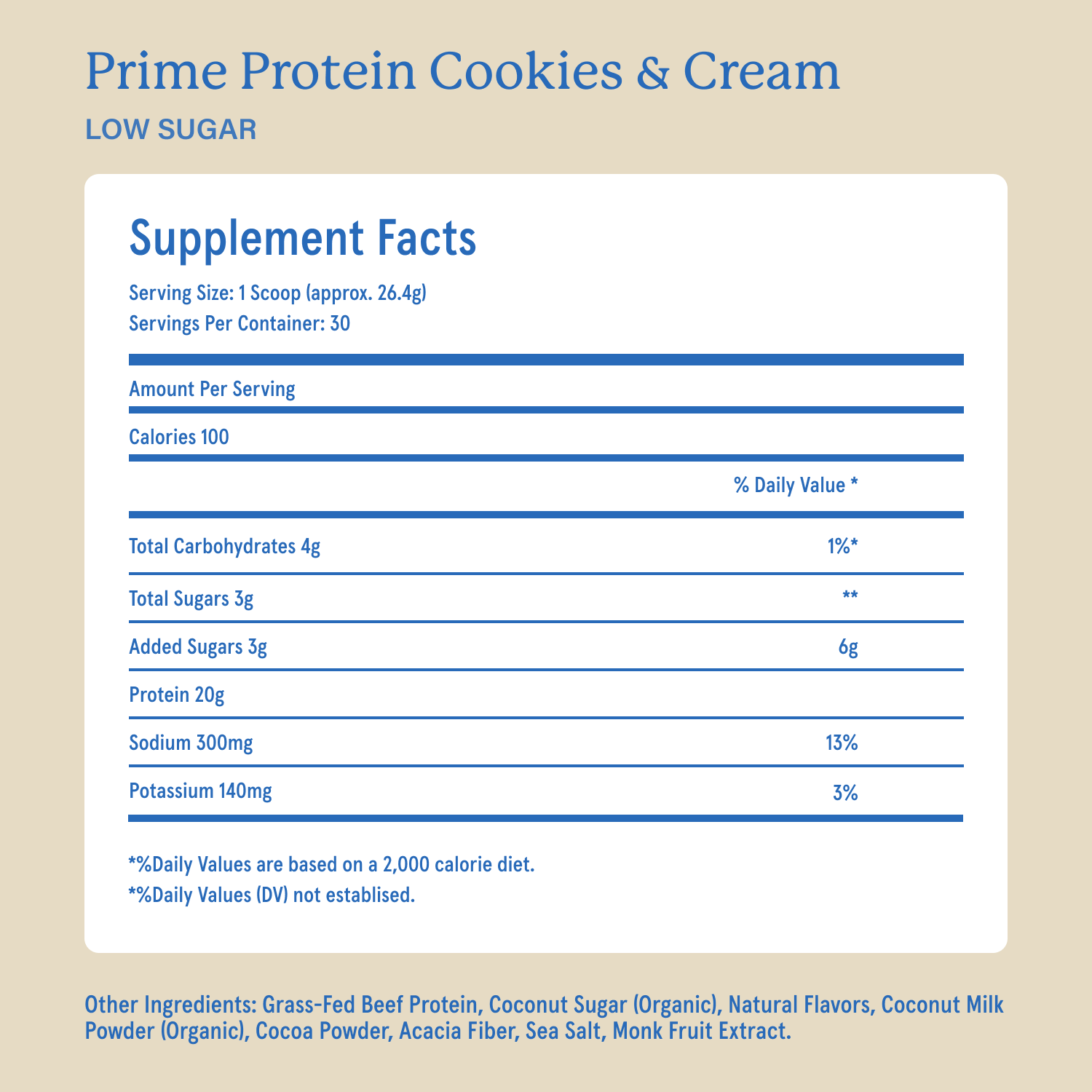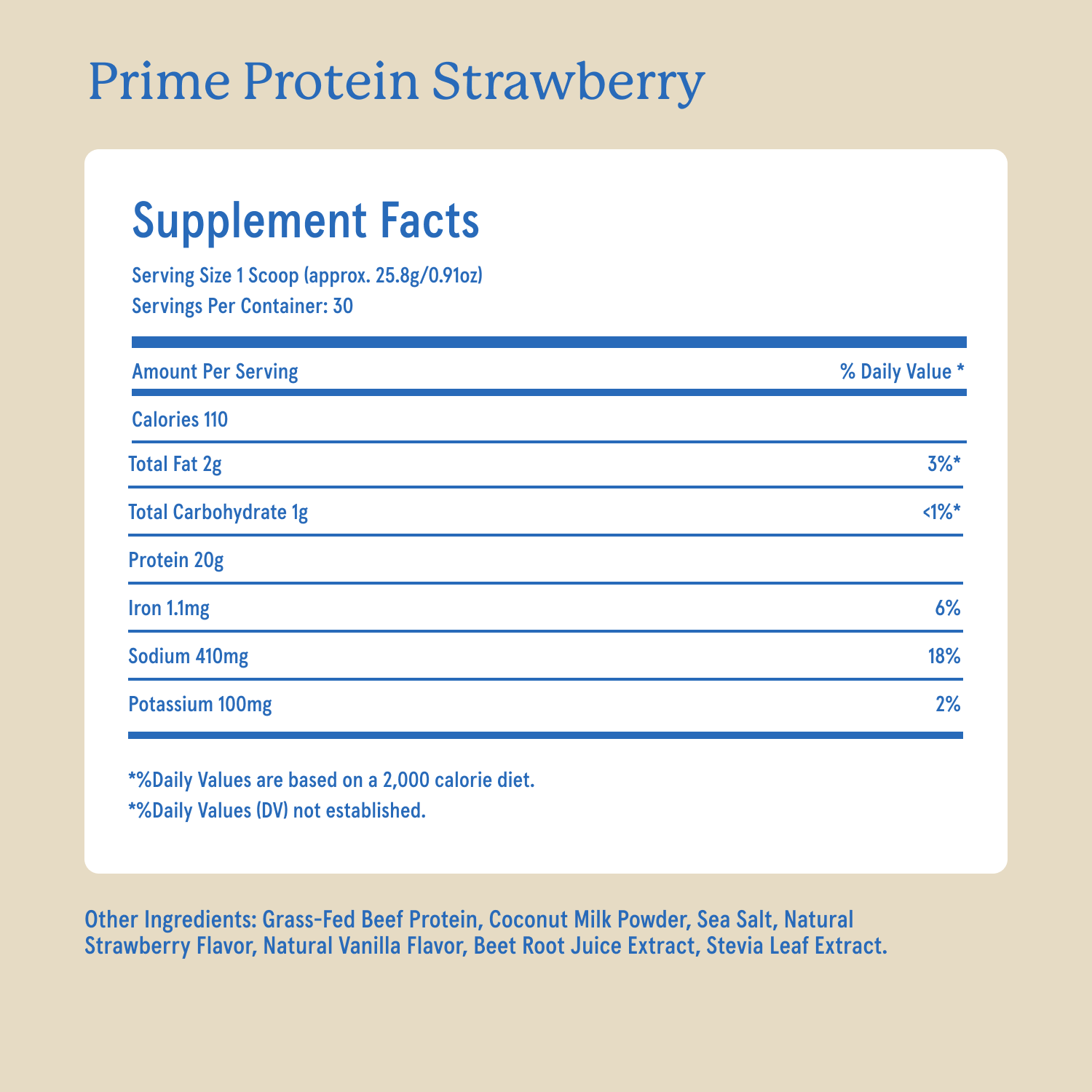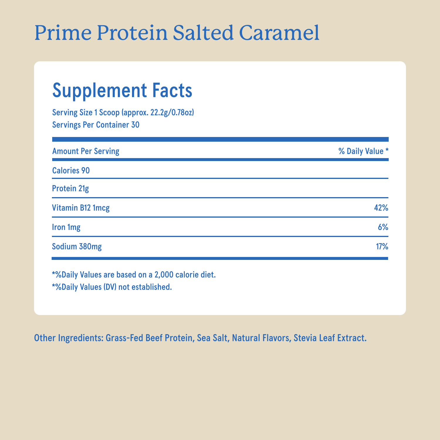 21g of bioavailable, complete protein from grass fed beef per scoop. 30 servings per bag.