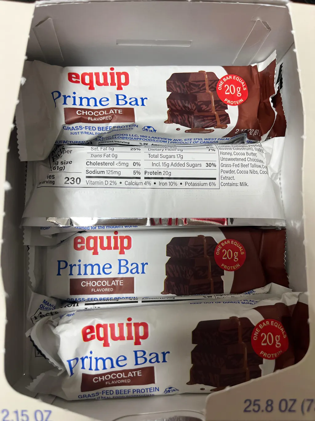 Prime Bar Chocolate: Beef Protein, Collagen, Colostrum, Dates, Honey, Cocoa Butter, Unsweetened Chocolate, Tallow, Cocoa Powder, Cocoa Nibs, Cocoa Extract.